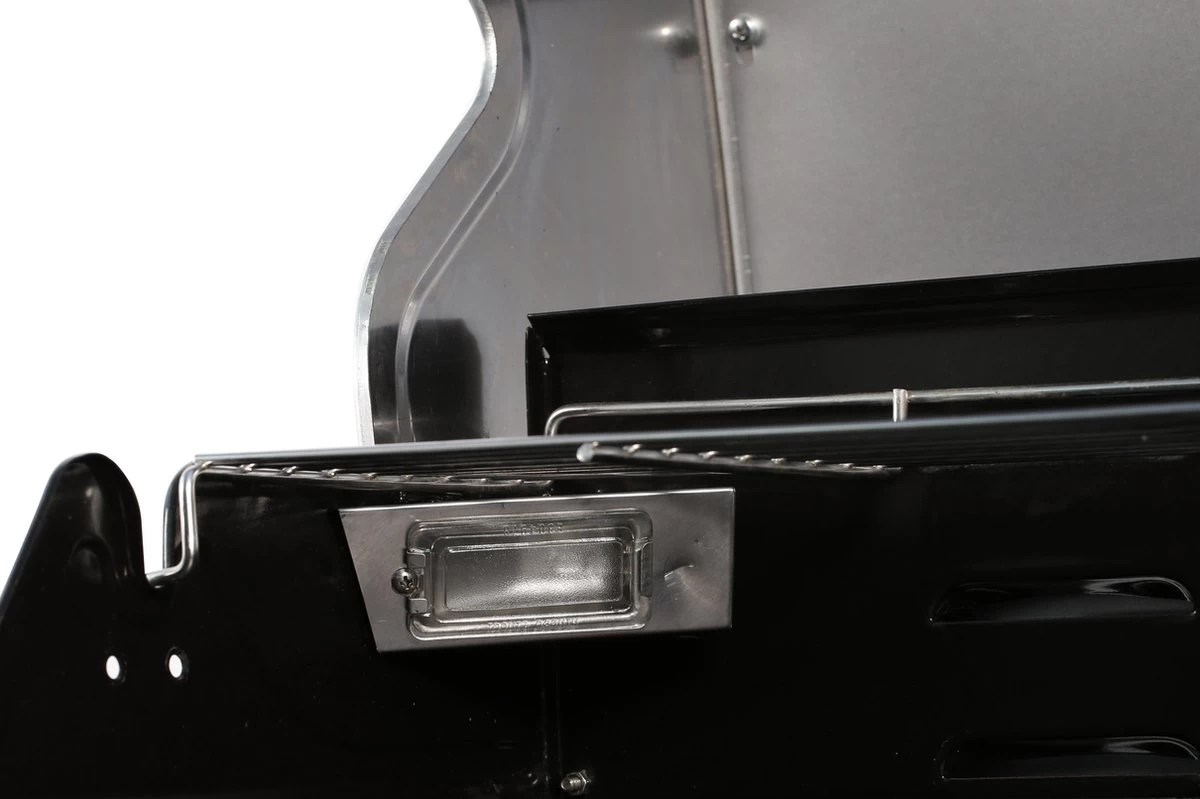 – Het grillopvervlak is voorzien van gietijzeren roosters en een gietijzeren bakplaat. De roosters bieden een mogelijkheid om een pizzasteen te gebruiken.